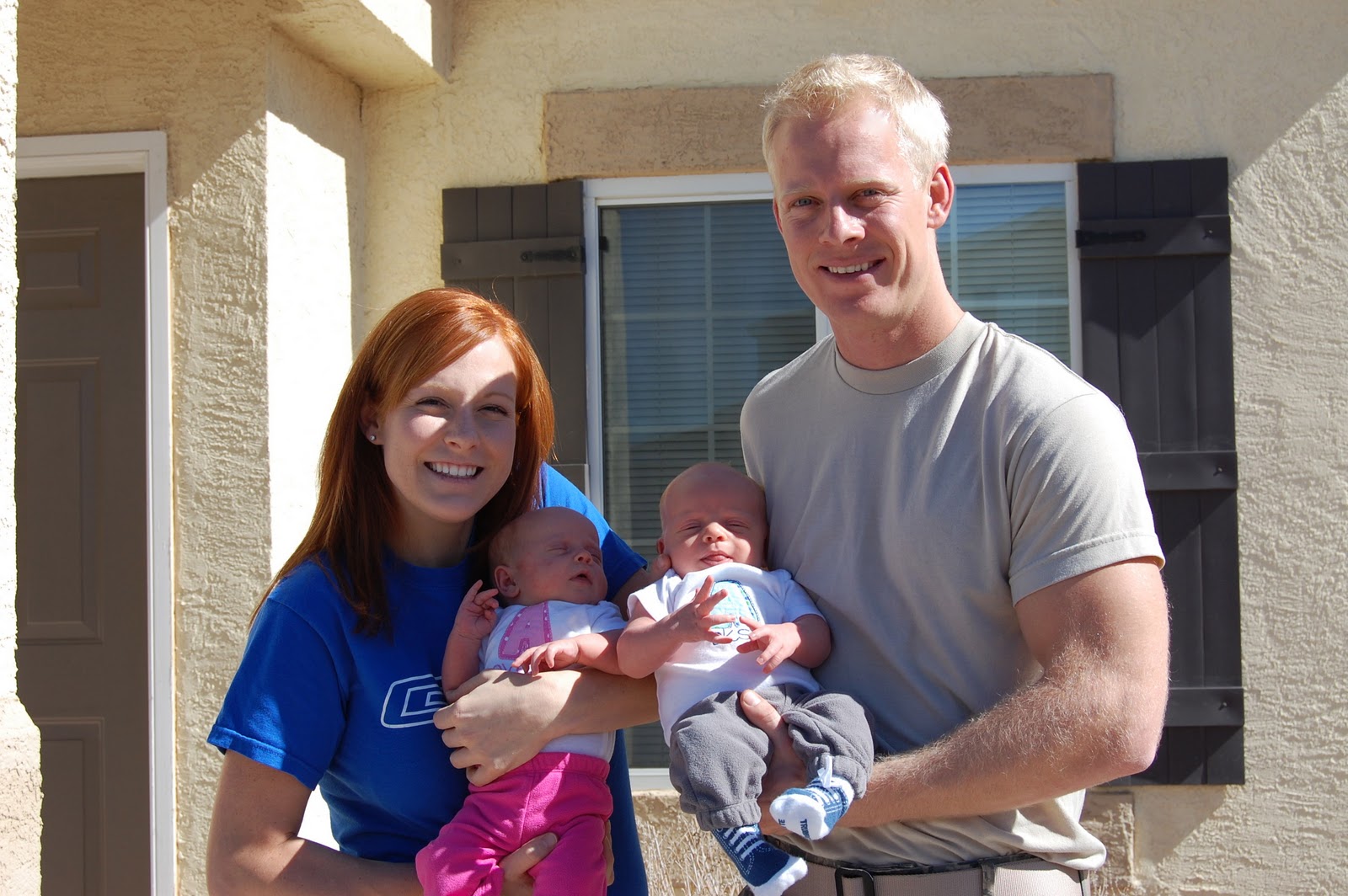 The day I got to shower and put on some makeup! This is us in front of our new home :) The twins are now doing much better on their schedule and are actually sleeping in the nursery for the first time tonight!