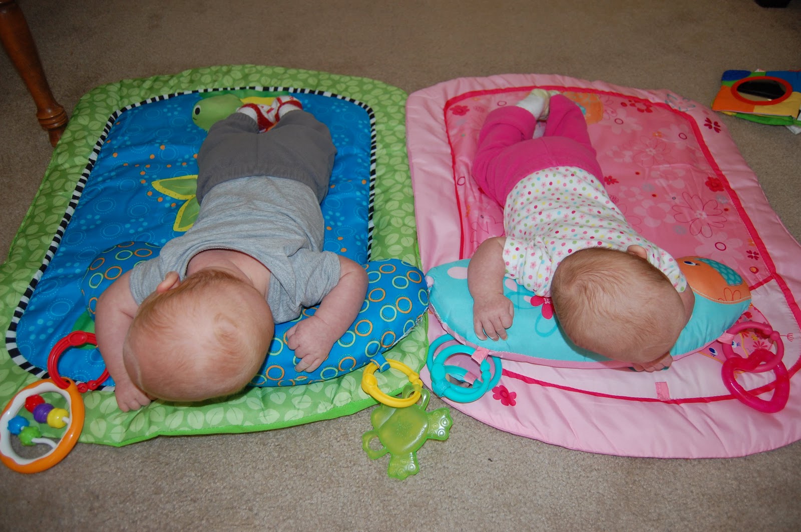 Best friends! They are starting to watch each other more now....during play time when I have them on their mats sometimes they will just stare at each other like, "Heeeeyyyyy.....yeah YOU were that person with me in mama who was kicking all the time!"